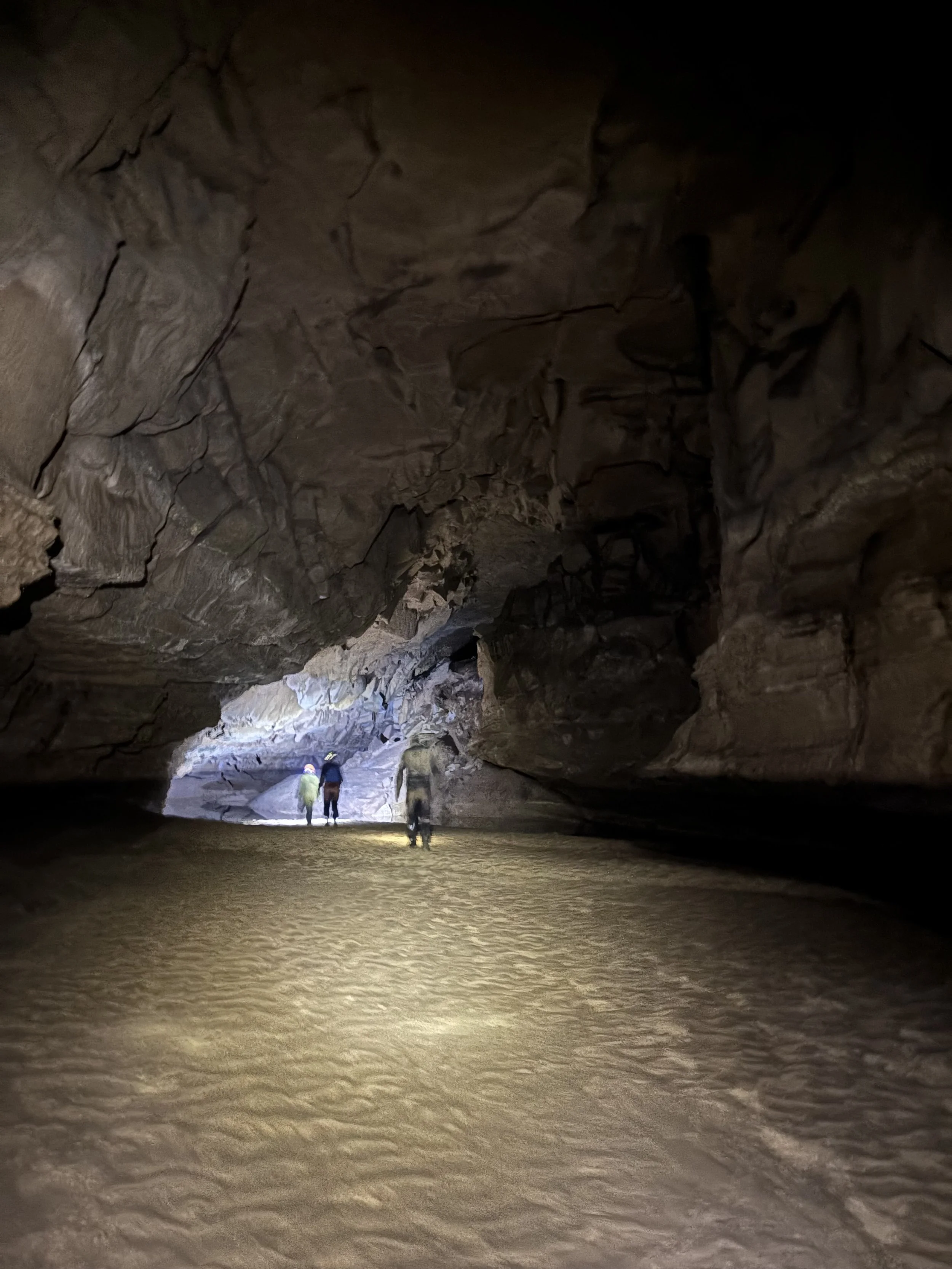 We took 30 minutes for a lunch/ sun break and then headed to Piercys. Piercys is very different from Piercy Mill. It is still a wet cave but a different water source and the ground is all sand. It is a wide open passage that heads back pretty far (I would assume close to a mile?). Erik, Chris, Tristen, and Will hung out not too far from the entrance while Erik climbed a rope that Mark and Yvonne had set up about 20 years ago when they were doing a dig. Maya, Margo, Josh and I continued toward the back of the cave weaving left to right from one sandy bank to the other. We didn’t make it all the way to the back but did walk for a good long time. At about 4:45pm we headed out of the cave and met up with the others at the cave opening.